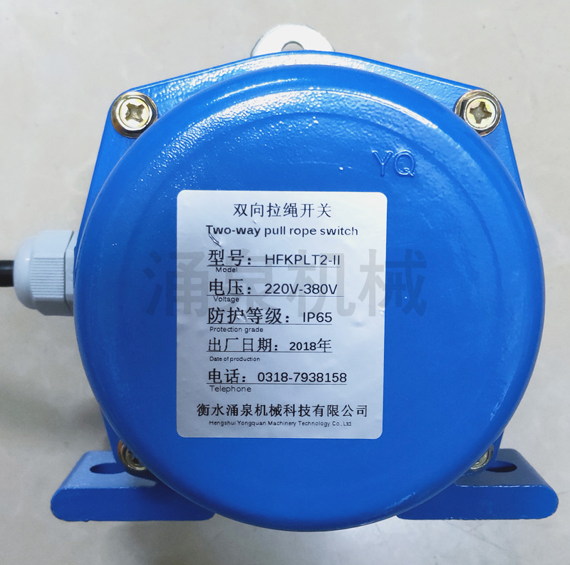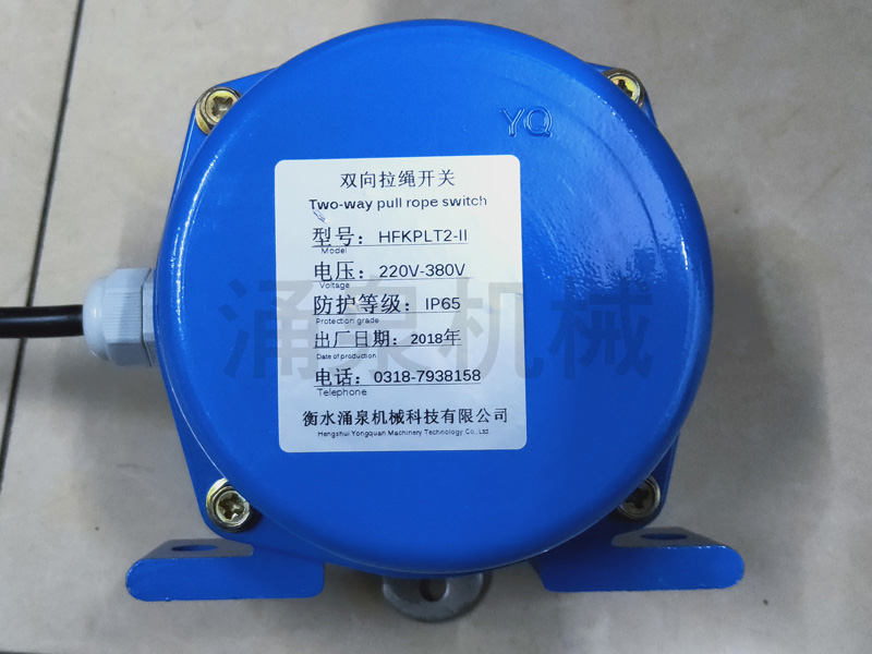 地址碼雙向拉繩開(kāi)關(guān)廣泛應用于鋼鐵、水泥、電廠(chǎng)、礦山等具有帶式輸送機的廠(chǎng)礦,該產(chǎn)品安裝在膠帶輸送機兩側,是用于膠帶輸送機緊急事故停機的一種保護開(kāi)關(guān),在開(kāi)關(guān)操作距離內任何一點(diǎn)拉動(dòng)鋼絲繩,切斷運行電路使全線(xiàn)停機,實(shí)現對膠帶機及人身安全的保護。
