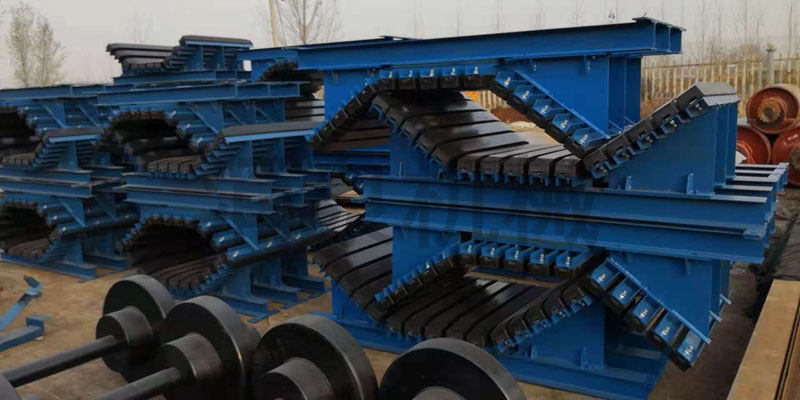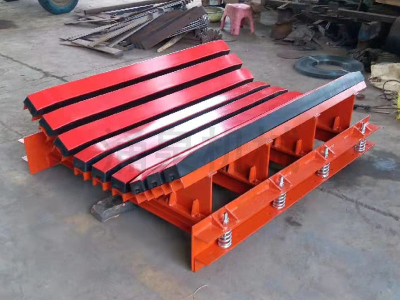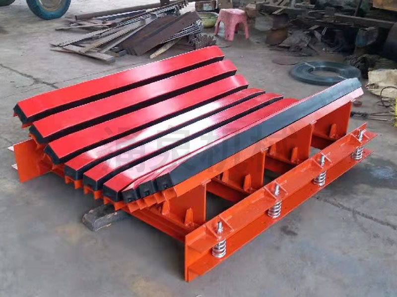 隨著(zhù)對煤炭生產(chǎn)的安全性、經(jīng)濟性認識的進(jìn)一步提高,對皮帶運輸機的要求也就越高,而膠帶在整個(gè)皮帶機中又是重中之重。在落料口傳統上采用緩沖托輥對膠帶進(jìn)行保護,而緩沖托輥存在轉動(dòng)件多、維護量大;大塊物料易卡死;沖擊面小等不足。我公司研制開(kāi)發(fā)的緩沖床就克服了以上缺陷,保證了輸送帶的面與面接觸,支撐面積大,受力均勻,能有效減少皮帶松垂和物料灑落,同時(shí)有效防止了由于托輥斷裂、脫落造成的皮帶縱向撕裂,降低了皮帶被銳器或尖銳物料穿透后的撕裂概率。緩沖床沒(méi)有運動(dòng)部件,無(wú)需例行維護,有效降低了輸送帶的運行成本。