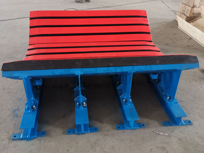 緩沖條上優(yōu)良的高彈性橡膠層有效地吸收了物料下落時(shí)的沖擊力,大大降低了下落物料對輸送帶的沖擊,真正的改善了落料點(diǎn)的受力狀況;采用超高分子聚乙烯板做為緩沖條的上表面,有效地降低了輸送帶與緩沖條之間的阻力,且具有較高的耐磨性,經(jīng)久耐用。