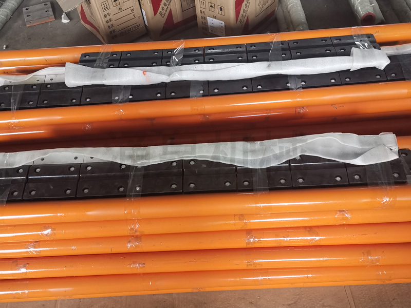 我公司設計的 HPU 系列清掃器為頭道清掃器,安裝在帶式輸送機頭部滾筒,清掃器安裝寬度可根據現場(chǎng)情況任意伸縮。刀片材質(zhì)為聚氨酯,具有耐磨損、抗腐蝕、不損傷皮帶、清掃干凈等優(yōu)點(diǎn),其特別的張緊裝置,設計合理,使用方便,可以在不停機的情況下將刀片和皮帶分離,以利于清掃刀口上的雜物。該系列清掃器安裝簡(jiǎn)單,維護方便,深受用戶(hù)青睞。