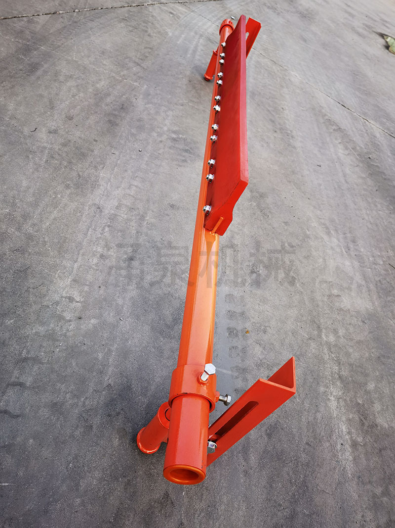 3.2 P型聚氨酯清掃器安裝在頭部滾筒下部回城輸送帶平直工作面處(見(jiàn)圖),支架寬度現場(chǎng)自行調節,與第一道清掃器配合使用,彈簧的壓力能自動(dòng)補償因刮刀與皮帶磨損產(chǎn)生的間隙,保持刮刀與輸送帶緊密接觸。
